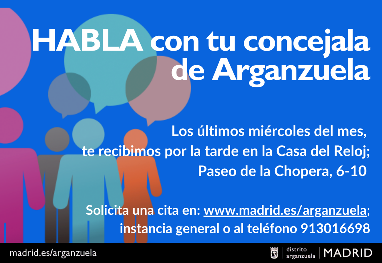 El último miércoles de cada mes, Lola Navarro, recibirá a vecinos que quieran conversar con ella sobre el distrito. Desde Arganzuela estamos comprometidos en escuchar las inquietudes de las personas que aquí conviven. Estamos seguros que hay muchas iniciativas que pueden ser canalizadas a través de esta Junta Municipal.