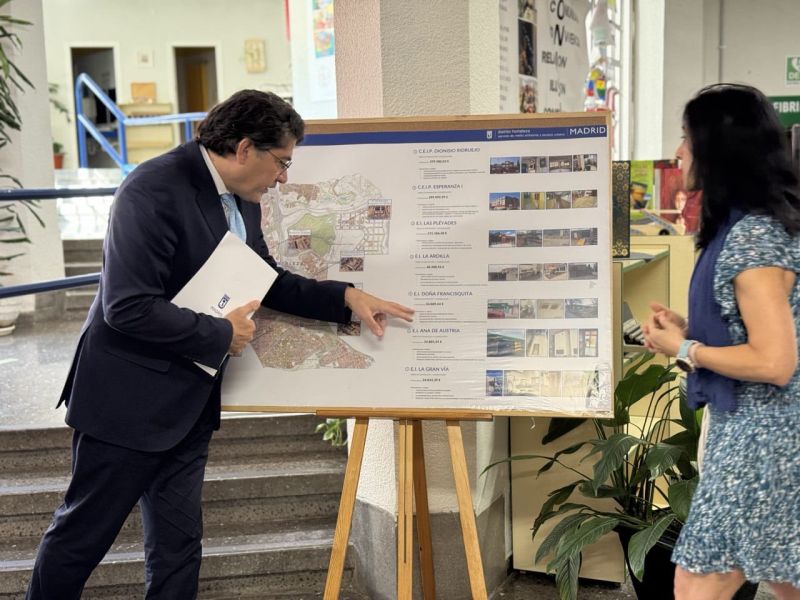 El concejal del distrito, David Pérez, ha anunciado el plan de obras de la junta municipal durante su visita al colegio público Dionisio Ridruejo. Las obras afectarán a los colegios Dionisio Ridruejo y Esperanza I y a las escuelas infantiles municipales Las Pléyades, La Ardilla, Doña Francisquita, Ana de Austria y Gran Vía.