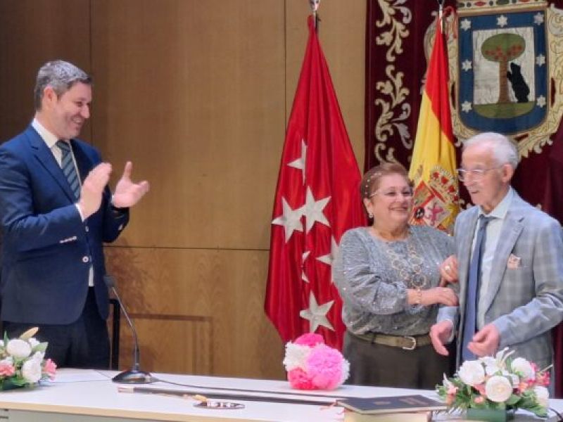 Alberto González, presidió, en el Auditorio Paco de Lucía, la emotiva ceremonia ‘Bodas del Recuerdo’, organizada por la Asociación de Familiares de Enfermos de Alzheimer y Demencias en colaboración con la JMD. Este acto, pionero en Madrid, rinde homenaje al amor duradero de siete parejas que, tras décadas de convivencia —algunas con más de 50 años de matrimonio— se han dado el ‘sí, quiero’ ante el concejal.